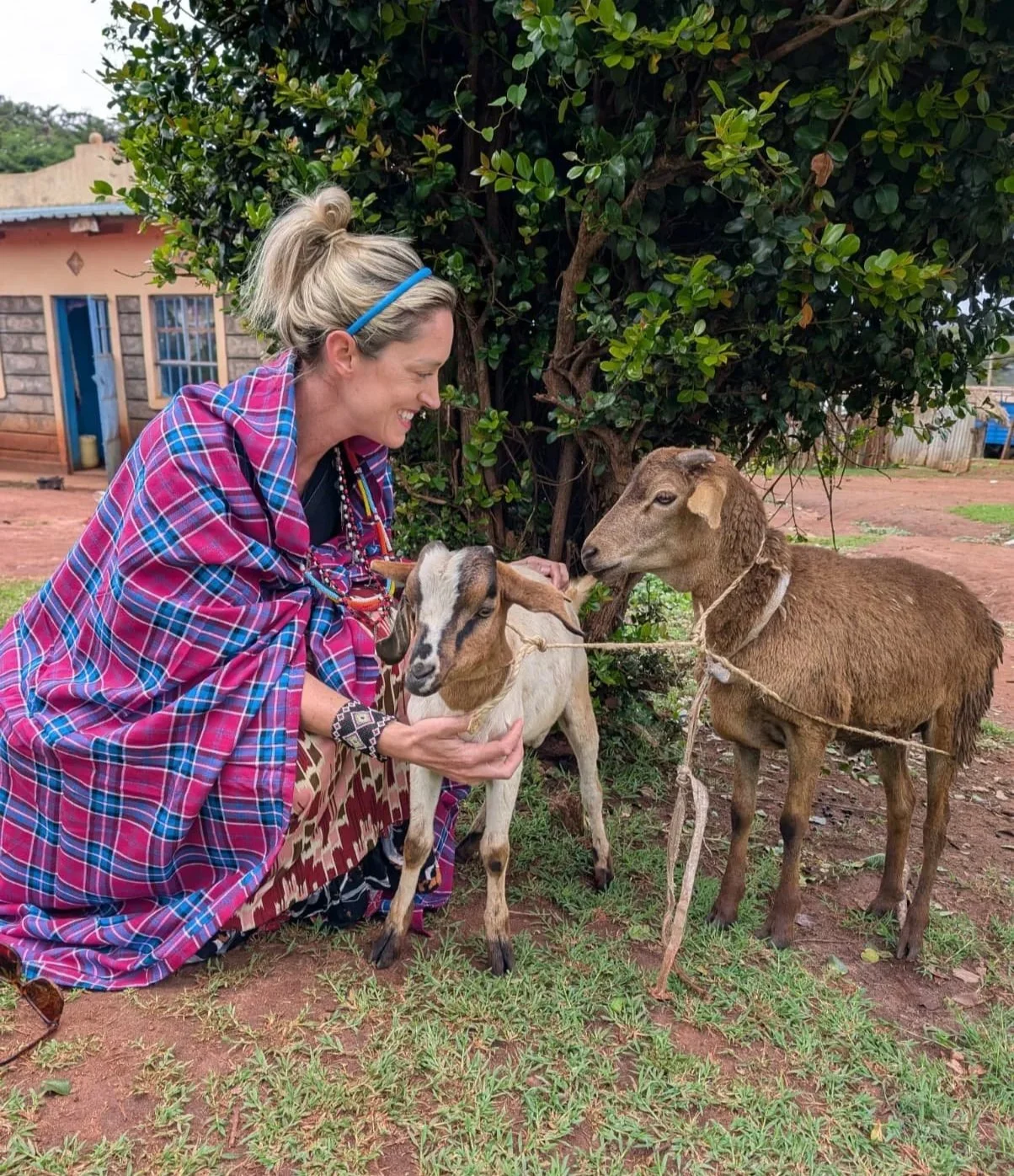 Sally making a few new four-footed friends in Kenya, 2026